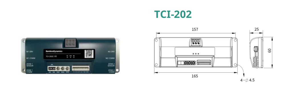 TRUEControl intelligent control cards are 2-zone control cards that can drive two MDRs simultaneously, reducing costs and increasing conveyor efficiency. The TCI control card has two control modes, PLC IO and a built-in ZPA mode. Multiple cards can interconnect serially with each other, creating a configuration network topology with simple wiring.